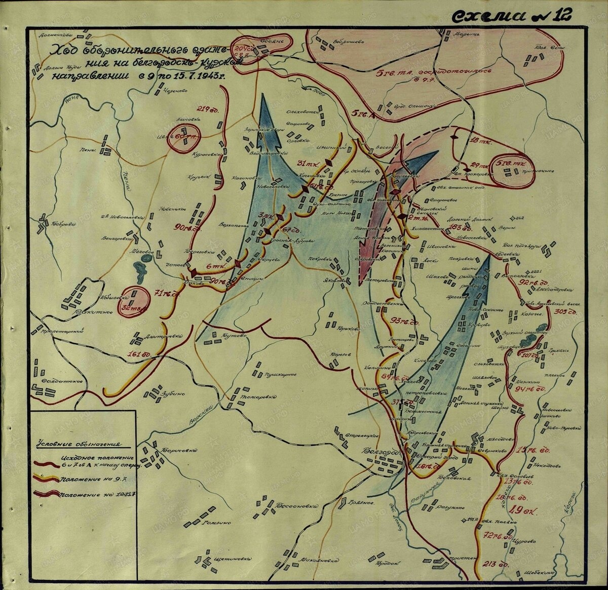 На самом деле, 12 июля 1943 года советские войска предпринимали неудачную атаку, которая стала частью боевых действий на южном фасе и не позволила оценить реальную динамику операции «Цитадель». Немецкие потери составили менее полусотни танков и самоходок, из которых безвозвратно погибло меньше десяти. Весь акцент на мифическом сражении скрывал истинную картину событий. Те, кто спешат приписывать победу Курской дуги высадке англо-американских войск в Сицилии, забывают: хоть открытие Второго фронта в Италии и имело значение, ключевой фактор происходил прямо на земле под Курском. 12 июля — день насыщенный событиями. На южном фасе немецкий 2-й танковый корпус СС с дивизиями «Лейб-штандарт Адольфа Гитлера», «Райх» и «Мёртвая голова» наступал на Прохоровку. На пути им встали новые советские силы — 5-я танковая и 5-я гвардейская армии, что кардинально изменило соотношение сил. Немцы пытались окружить наш 48-й стрелковый корпус 69-й армии, но успеха не достигли. Одновременно наступала группа К