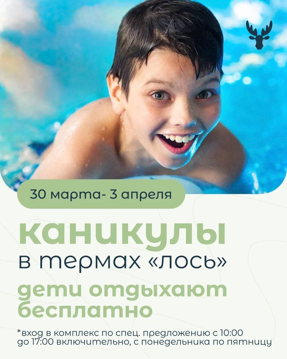 🔥🔥Бесплатный вход детям в термы «Лось» в весенние каникулы