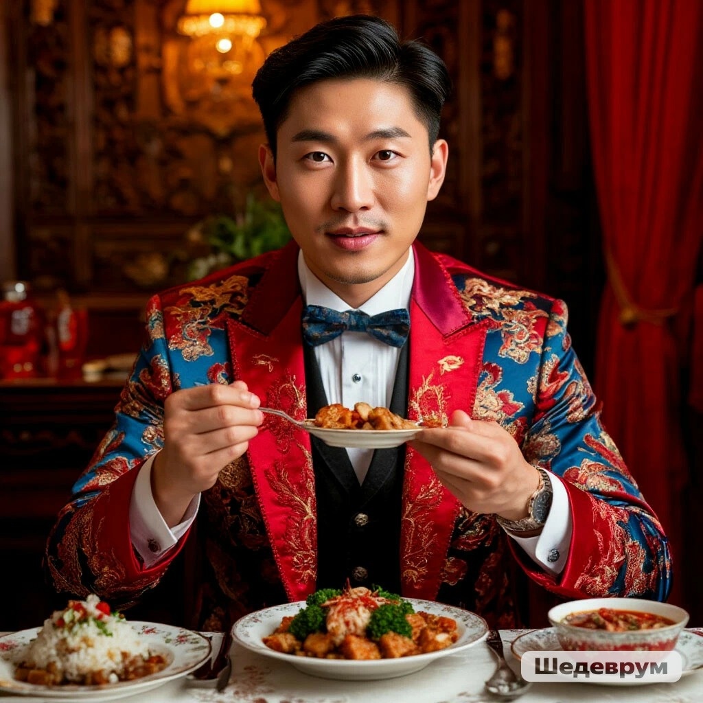 Ну, а кто же из нас не любит вкусно покушать? Даже симпатичный китаец на фотозаставке к сегодняшней статье сидит перед аппетитными русскими блюдами. Не всё же им свою лапшу хлебать... По крайней мере, фарфор на картинке точно русский)
