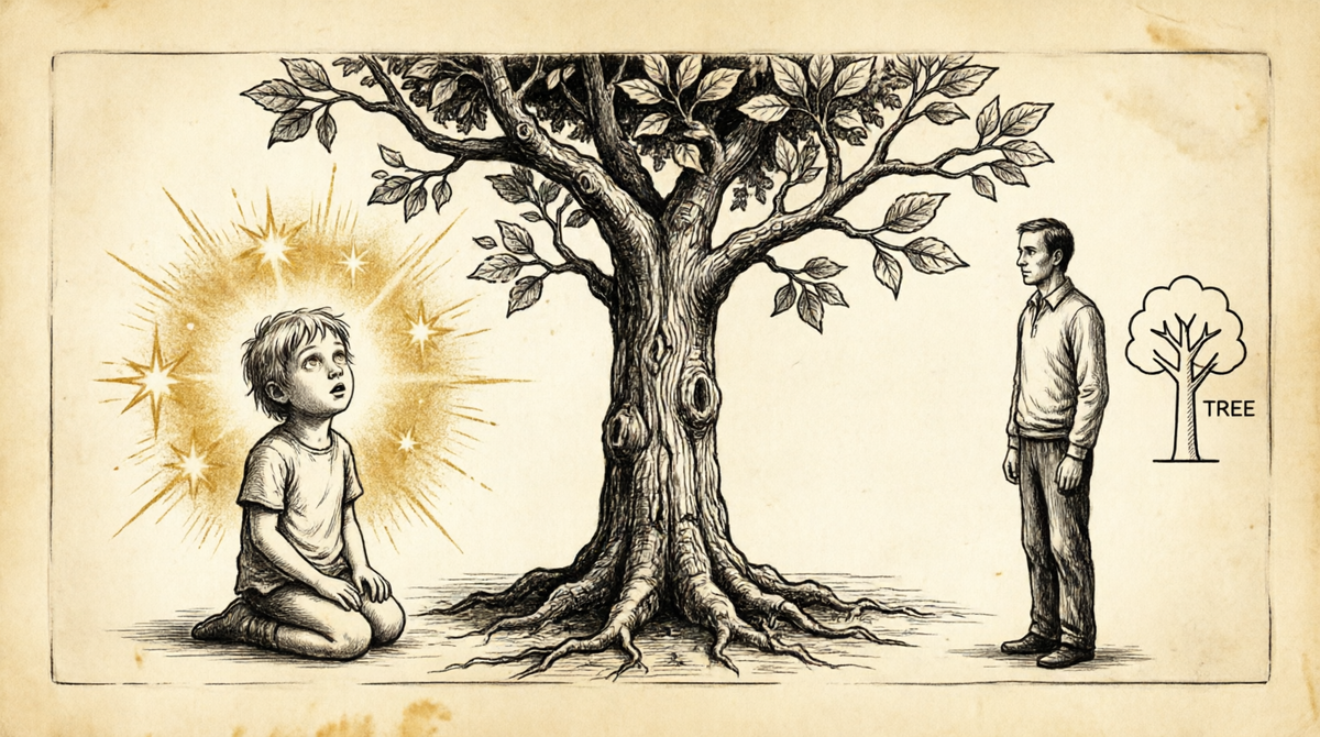 Вспомните, как вы впервые увидели снег. Не просто «белые осадки», а настоящее чудо. Каждая снежинка — уникальна. Каждый сугроб — открытие. Вы тянулись к нему руками, пробовали на вкус, удивлялись, как он тает на ладони. Теперь вы видите снег и думаете: «Зима. Холодно. Надо надеть шапку». Мы называем это опытом. Но что, если это потеря "территории", потеря особенности видеть непредвзято мир вокруг нас? Ребёнок живёт в постоянном удивлении. Для него мир не разделён на категории. Камень может быть сокровищем, лужа — океаном, тень от дерева — драконом. Взрослый смотрит на то же самое и видит: камень, лужа, тень. Мы знаем названия. Но мы перестали видеть. Наш мозг — экономный хозяин. Он создаёт шаблоны, чтобы не тратить энергию на каждое новое впечатление. Дорога на работу, лицо близкого человека, утренний кофе — всё это превращается в автоматизм. Мы перестаем видеть, начинаем узнавать. Представьте, что вы смотрите на закат. Вместо того чтобы почувствовать красоту и уникальность этого явлен