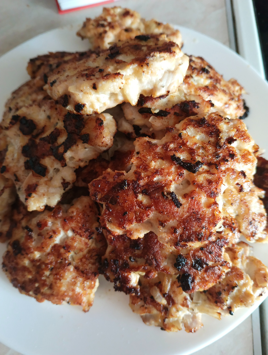 Пожарила рубленные котлеты. К ним на гарнир отварила рис и сделала салат.