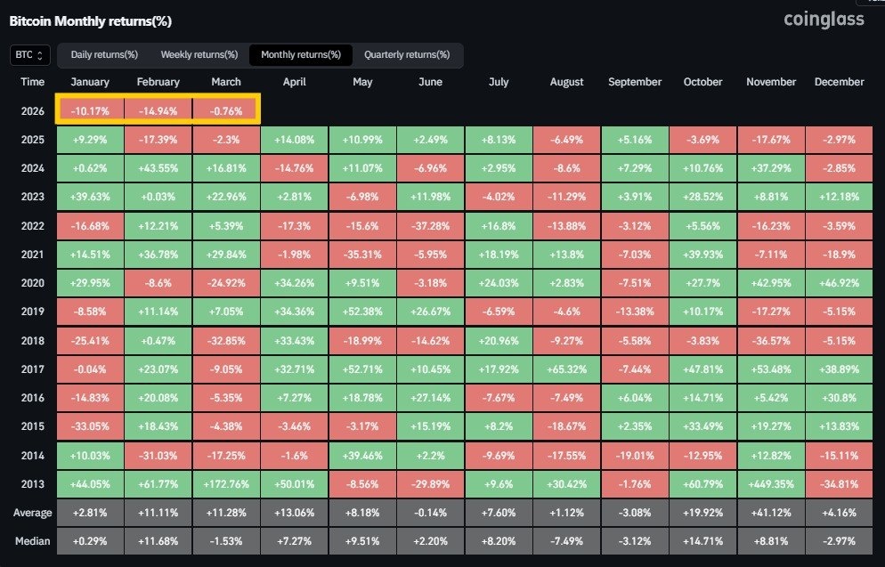 Согласно новым данным, есть вероятность, что в первый раз за всю историю Биткойна первые три месяца года могут завершиться с убытками
