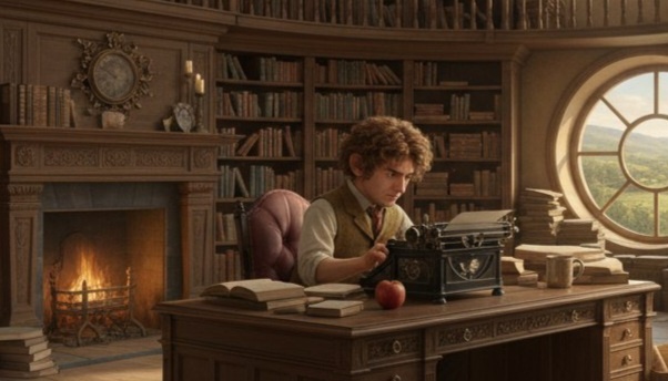 Вы, конечно, уже не раз читали, что всё началось с чистого листа, сданного школьником, вместо экзаменационной работы на проверку профессору англосаксонского языка Толкину в Оксфордском университете, на котором профессор взял да и написал: "In a hole in the ground there lived a hobbit"/«В норе под землёй жил хоббит».