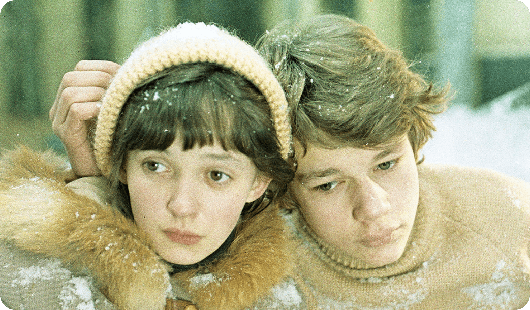Одна сцена не отпускает меня при каждом пересмотре. Полутемное кафе на углу Малого Ржевского и Скатертного переулков. Свет погас, на столе мерцает свеча. Рома берет ледяные пальцы Кати и осторожно, как что-то живое и невесомое, начинает их согревать. Это была одна из первых отснятых сцен — актеры еще толком не знали друг друга. И от этой неподдельной неловкости перехватывает дыхание. «Хорошо, что ты маленькая. Жаль, что ты маленькая...» — шепчет Ромка. Фраза застревает внутри, как заноза. Нежность и бессилие одновременно. Мальчик уже понимает то, чего не понимают его родители: любовь не вопрос возраста.