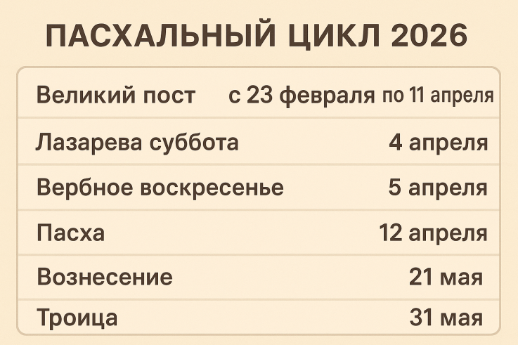 Апрель 2026 года – месяц удивительный. И страстной, и светлый, и радостный. В нём – вся наша вера. Смерть и Воскресение. Пост и Пир. Слёзы и смех.