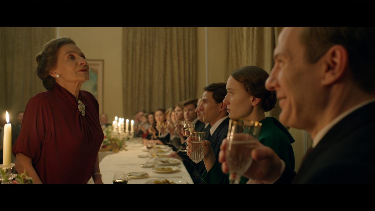 Стол был длинным, праздничным, с белой скатертью и свечами в высоких подсвечниках. Нина Борисовна стояла во главе — в бордовом платье, с брошью на плече, с тем выражением именинницы, которой весь вечер принадлежит зал. Семьдесят лет. Юбилей. Двадцать три гостя.
