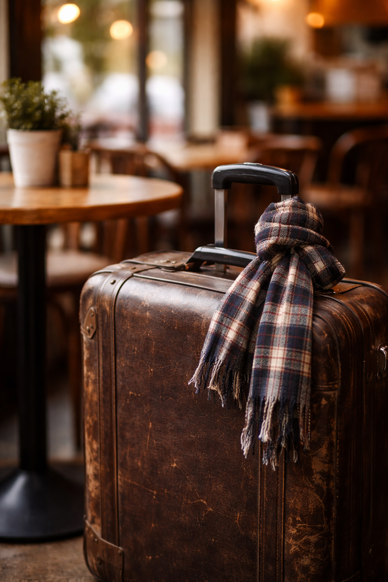 Он был в старом пальто, с дешёвым клетчатым шарфом и с чемоданом. Настоящим, потёртым, на колёсиках, как у людей, которые собрались «куда-нибудь пристроиться».