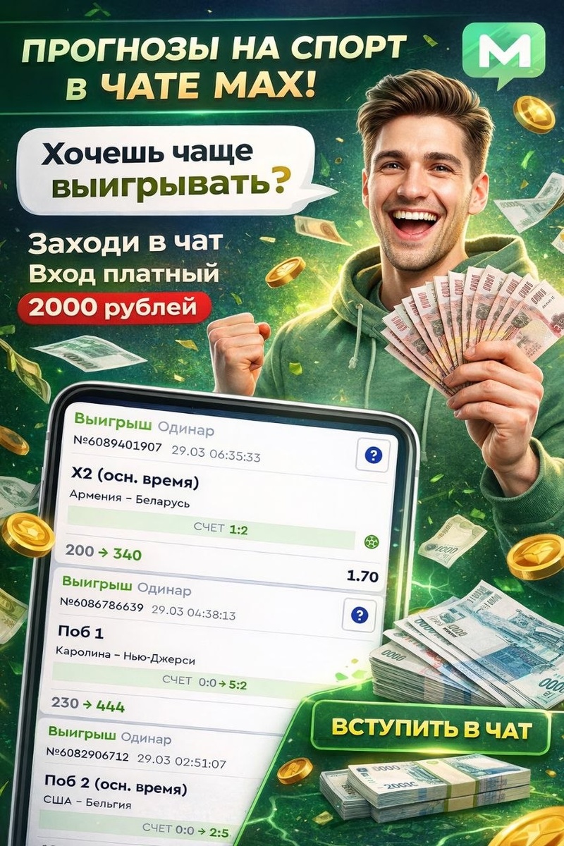 Точные прогнозы на спорт за 2000 рублей: как вступить в чат MAX и начать зарабатывать на ставках уже сегодня!