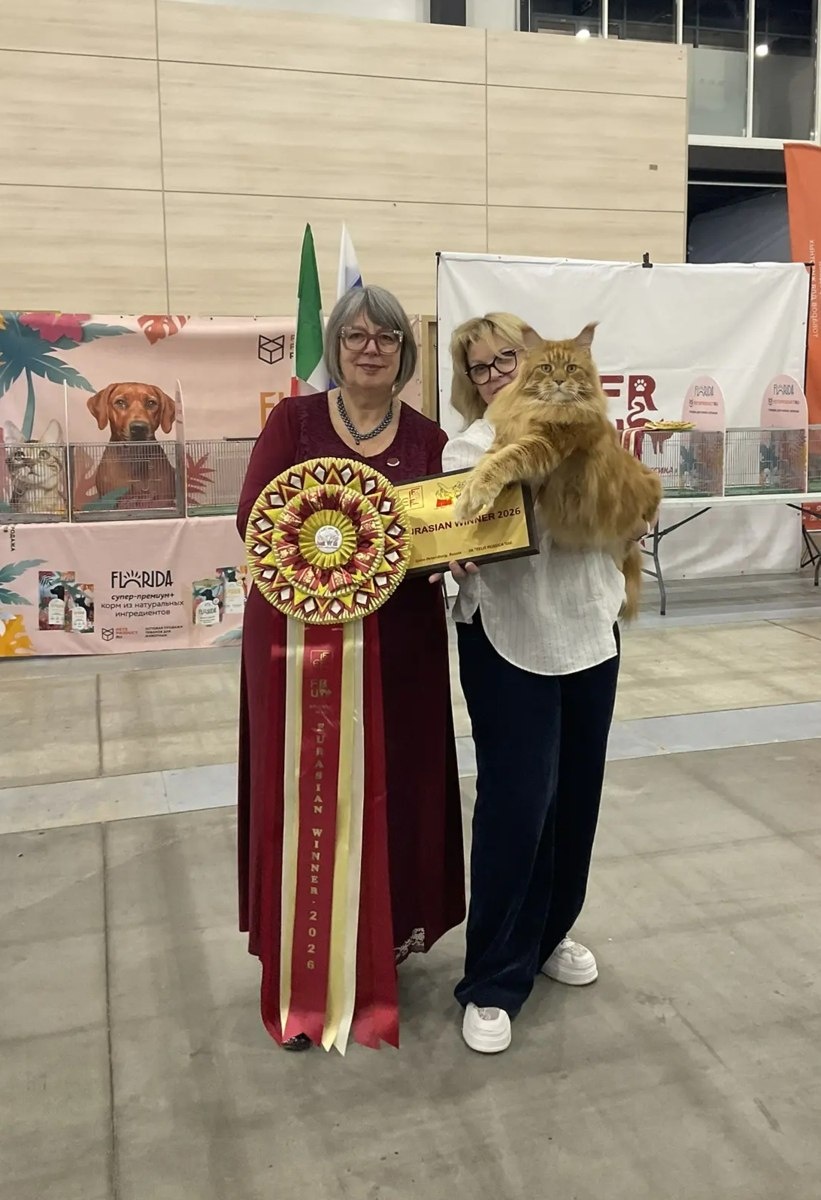 » Друзья, сегодня Наш Красный мрамор Double Master, ICh, GIPr (WCF) ICh(FiFe) Frenkie Raksi Line*RU получил титул «Eurasian Winner 2026» по системеFIFE. Это значит, что эксперты официально признали его одним из лучших представителей породы мейн-кун. Для нас это важно и очень приятно. Мы находимся в пригороде Санкт-Петербурга и доказываем: титулованные животные рождаются только там, где ценят семейные ценности. Хотите мейн-куна для семьи с родословной победителя? #ДомВРакси #мейнкунспб #EWS2026 #EWS26 #EurasianWinner2026 #титулованныеживотные #мейнкундлясемьи #здоровьемейнкунов #кошкиспб https://homeinraksi.ru/ Группа VK. Мы открыли канал в MAX