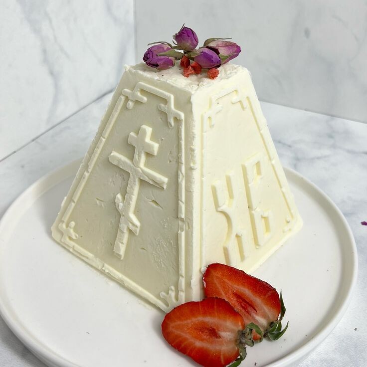 По истечении времени аккуратно достаньте пасху из формы: переверните её на тарелку, снимите марлю.