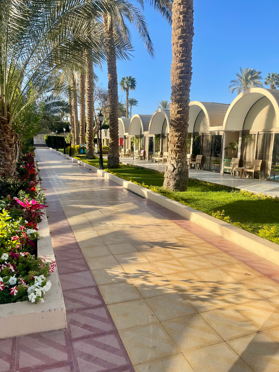 Отель нормальный: большая территория, одноэтажные блоки. Немного уставший, но чистый и уютный.