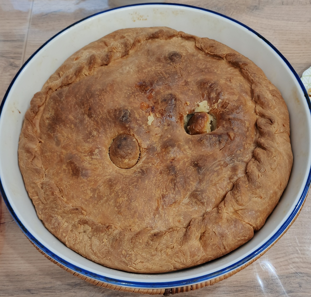 Через 1.5 часа начинаем проверять картошку, как она сготовится, значит пирог готов.