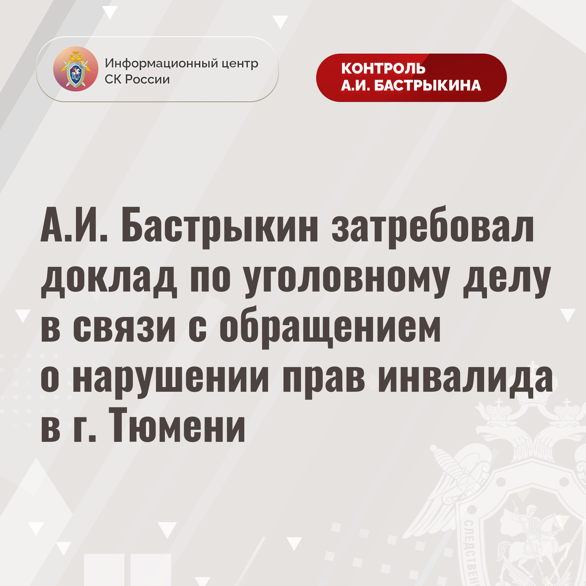 А.И. Бастрыкин затребовал доклад по уголовному делу в связи с обращением о нарушении прав инвалида в г. Тюмени