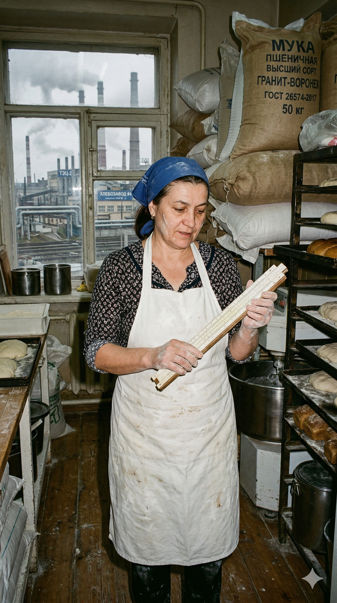 Первая смена. В 4 утра город спит под слоем серой пыли. В пекарне жарко и пахнет ванилью. Моя работа — просеивать муку. Десять мешков по пятьдесят килограммов. К концу смены я не чувствую спины. Но в кармане — тысяча рублей. Мои первые «новые» деньги.