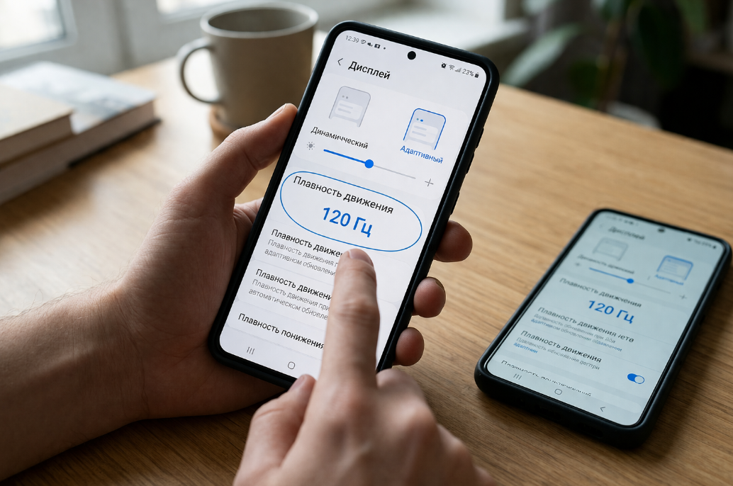 Настройка называется «Частота обновления экрана». Она есть в любом современном Android-смартфоне с 2020 года. На большинстве телефонов по умолчанию стоит 120 Гц. Её нужно переключить на 60 Гц или на адаптивный режим. Это всё. Никаких приложений, никаких платных функций. Герцы в контексте экрана - это сколько раз в секунду изображение на дисплее обновляется. При 60 Гц - 60 раз в секунду. При 120 Гц - в два раза чаще. Зачем это нужно: прокрутка лент, анимации интерфейса, игры - всё выглядит плавнее. Разница заметна, особенно первые дни после перехода с более старого телефона. Если провести пальцем по экрану - при 120 Гц список едет как по маслу, при 60 Гц чуть менее плавно, хотя большинство людей уже через день-два перестают это замечать. Для чего это не нужно: чтение статей, переписка в мессенджерах, просмотр видео, звонки, навигация, работа с документами, фотографии в галерее. То есть примерно 80% того, чем большинство людей пользуется каждый день - без какой-либо разницы. Экран - один
