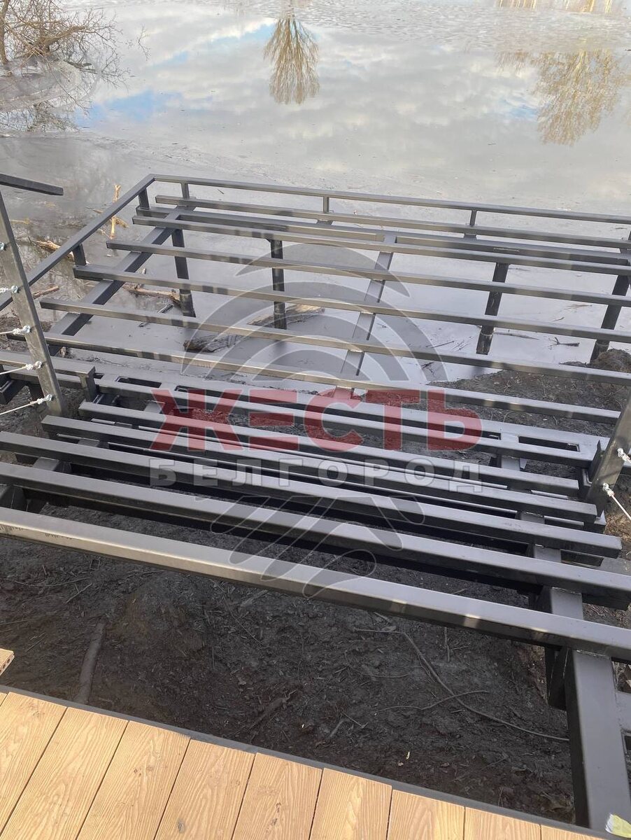 За «Мебельным городом» металлические конструкции красят прямо над водой — вся река покрывается краской.
