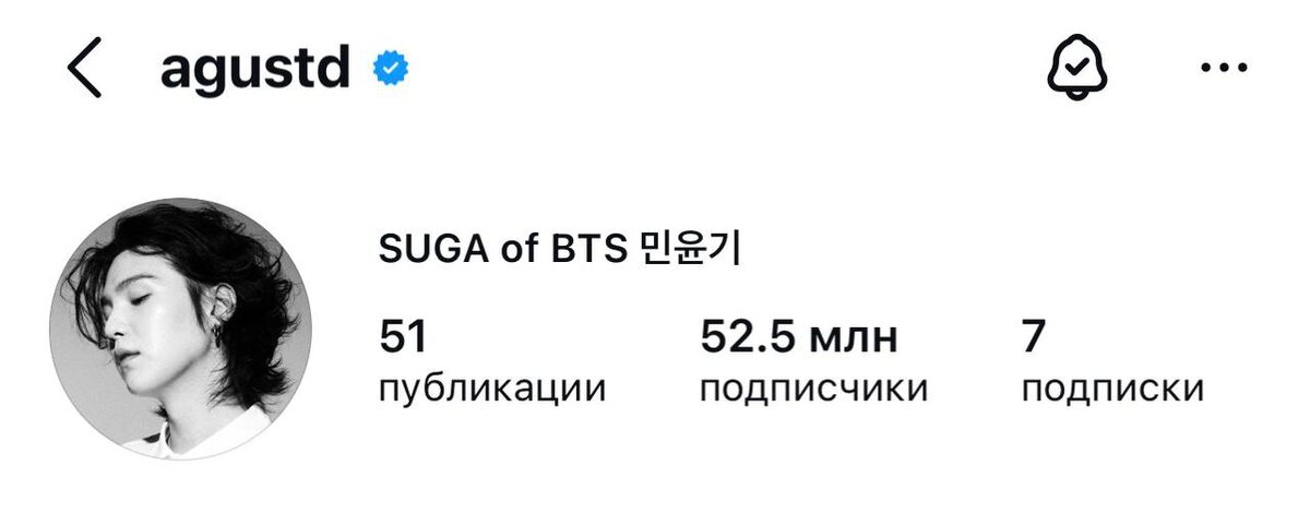 🍊 Аккаунт Юнги в Instagram преодолел отметку в 52,5 миллиона подписчиков