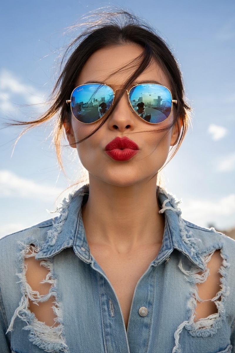Вы когда-нибудь задумывались, почему одни фотографии выглядят как случайный кадр на телефон, а другие — как рекламная кампания мирового бренда одежды? Секрет не только в модели или камере, а в сочетании текстур, света и аксессуаров. Сегодня я разберу, как воссоздать эстетику «солнечного денима» и получить результат, который не отличить от работы профессионального фотографа в Лос-Анджелесе. ⚡️ На примере этого кадра мы видим идеальное комбо: грубая текстура джинсы, динамика в волосах и зеркальные очки, которые буквально «продают» всю композицию. Хорошая новость в том, что для такого результата вам не нужно лететь к океану или искать винтажную куртку. Достаточно правильного промпта и нейросети Nano Banana. Деним — это база, но в нейросетевом искусстве это еще и сложная задача для алгоритмов. Правильно передать потертости, швы и то, как ткань сидит на теле, может не каждая модель. Однако именно сочетание «тяжелой» ткани и легкого, летящего образа создает тот самый люксовый контраст. Добав