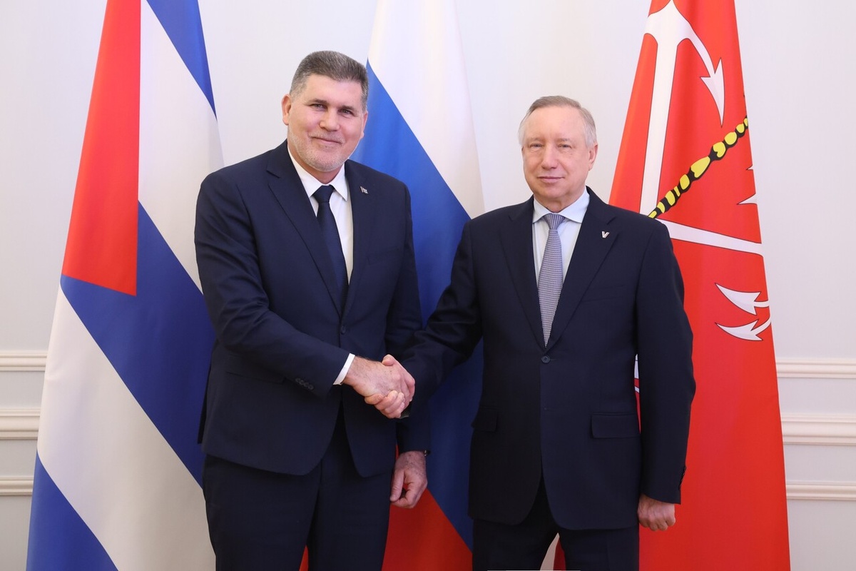 Губернатор Александр Беглов 29 марта встретился в Смольном с заместителем премьер-министра, министром внешней торговли и иностранных инвестиций Республики Куба Оскаром Перес-Оливой Фрагой, сообщают в пресс-службе правительства города. Встреча состоялась перед заседанием российско-кубинской Межправительственной комиссии, которое пройдет 1 апреля в Петербурге. "Отношения России и Кубы опираются на прочную историческую основу и развиваются при активном участии лидеров двух стран. А памятная дата - 100-летие со дня рождения Фиделя Кастро, которое мы будем отмечать 13 августа, - напоминает о роли Команданте в становлении дружбы между нашими государствами", - отметил губернатор. Беглов отметил основные сферы сотрудничества Кубы и Петербурга. Российские и кубинские медучреждения обмениваются опытом и технологиями. Стороны вместе разрабатывают элементы благоустройства в Гаване. Куба и Петербург также сотрудничают в сфере образования. Беглов выразил готовность принять кубинских студентов для об
