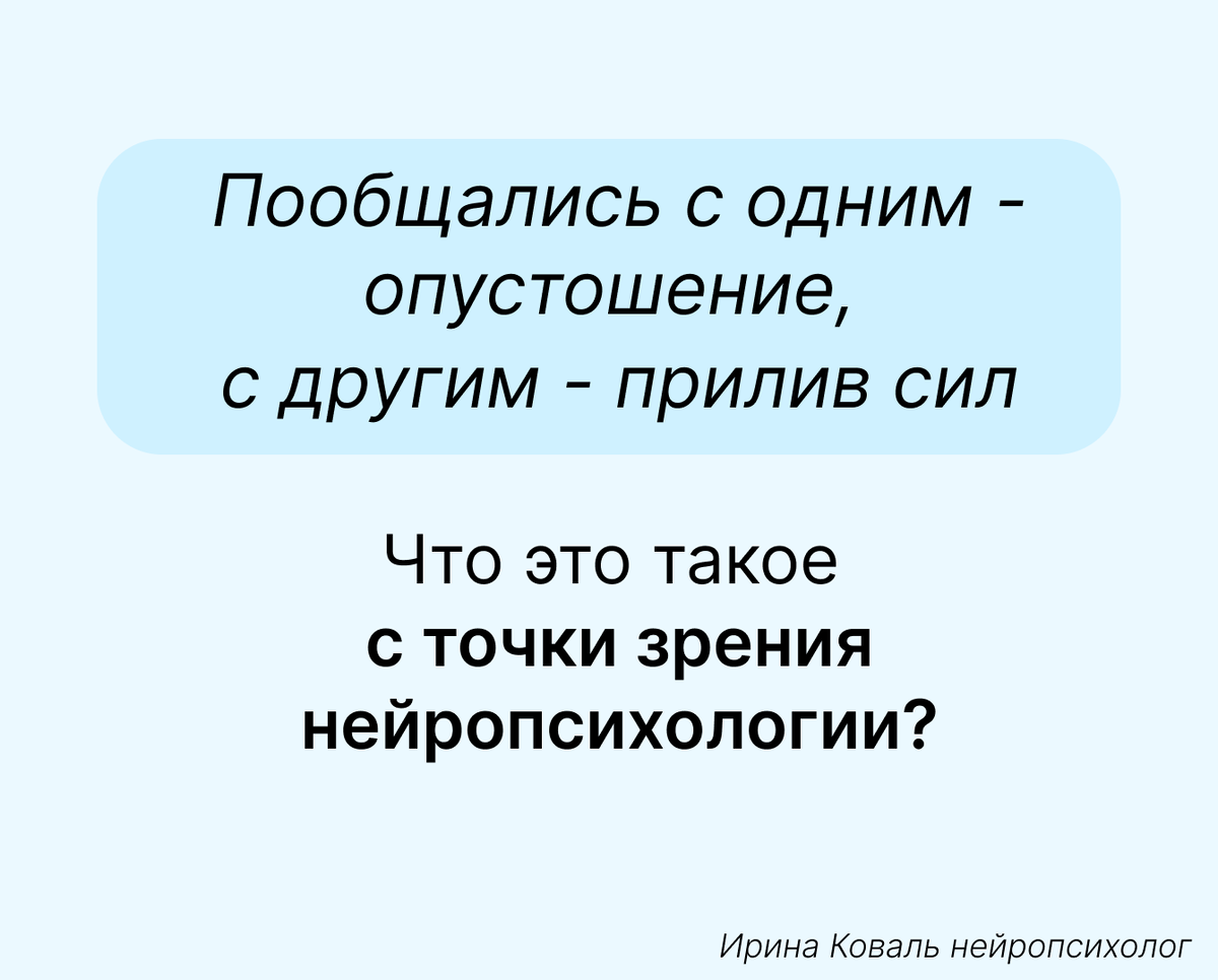 Вы когда-нибудь чувствовали после общения с кем-то опустошение, упадок сил, в народе таких людей называют «энергетическими вампирами»? А после встречи с другим человеком - наоборот, прилив сил и спокойствия? Обмен энергией между людьми возможен потому, что наш мозг - это предсказательная машина, которая постоянно моделирует реальность, включая поведение других людей. И в зависимости от качества взаимодействия этот обмен либо восстанавливает силы, либо истощает. ▪️Обмен энергией в состоянии покоя и доверия: ➡️Когда люди находятся в покое, спокойно и доброжелательно общаются, их мозг входит в режим межмозговой синхронизации. ➡️Вы спокойно улыбаетесь собеседнику - его зеркальные нейроны активируются так, как будто он сам улыбается. Два отдельных мозга начинают работать в унисон. ➡️Нейрохимия покоя Снижается уровень кортизола, гормона стресса, повышается уровень окситоцина, гормона привязанности, он связан с безопасностью и доверием. Активируется парасимпатическая нервная система, которая