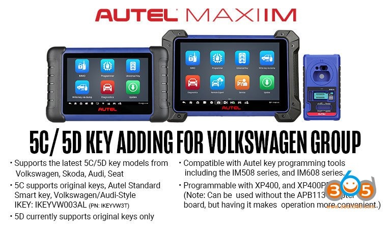 📰 OBDII365.com Official Blog С 19 марта 2026 года серия устройств Autel MaxiIM IM508 / IM608 получит функцию VAG MQB49 5C/5D immo. Устройство будет поддерживать новейшие модели ключей 5C/5D от Volkswagen, Skoda, Audi, Seat. Ключ 5C совместим с оригинальными ключами, стандартным смарт-ключом Autel, ключом Volkswagen/Audi-Style IKEY: IKEYVW003AL (PN: IKEYVW3T). Программирование возможно с помощью инструментов XP400 и XP400PRO. Ключ 5D в настоящее время поддерживает только оригинальные ключи. Дополнительная лицензия не требуется, но устройство MaxiIM должно быть в рамках подписки. 🔗 Читать полностью #новости #автодиагностика #автоключи #audi #autel #bmw #canbus #smartkey #volkswagen #программирование