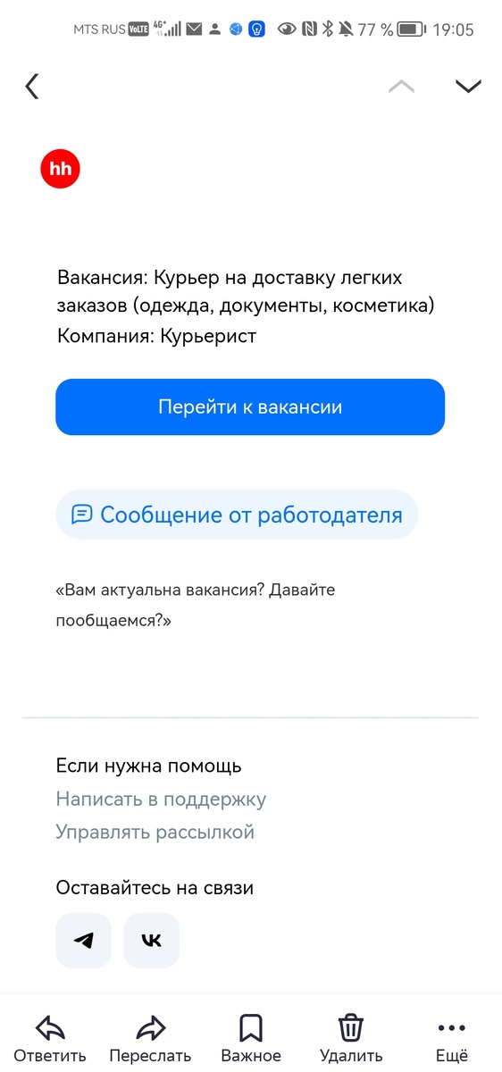 Утром захожу на hh_ru проверить, не появилось ли чего по моей "гражданской" специальности.