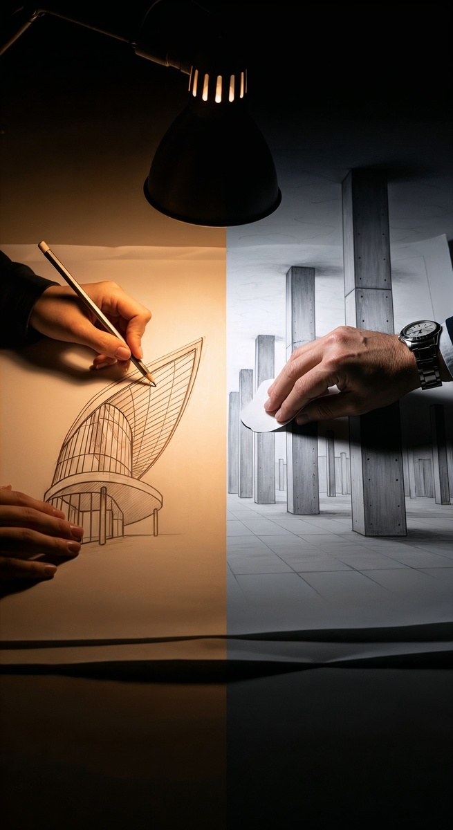 Проект культурного центра выиграл региональный конкурс, и Виктор представил его на конференции в Екатеринбурге, показывая слайды, где мои эскизы чередовались с его доработками, и я сидела в зале, чувствуя, как поднимается что-то горячее и неловкое в груди, когда он говорил «мы решили», «нам казалось», «наша концепция». После доклада к нему подошёл молодой журналист из профильного издания, и я услышала, как Виктор отвечал на вопрос о вдохновении: «Это проект зрелости, когда перестаёшь копировать и начинаешь фильтровать. Молодёжь сейчас хороша в софте, но в архитектуре нужно время, чтобы пережить».