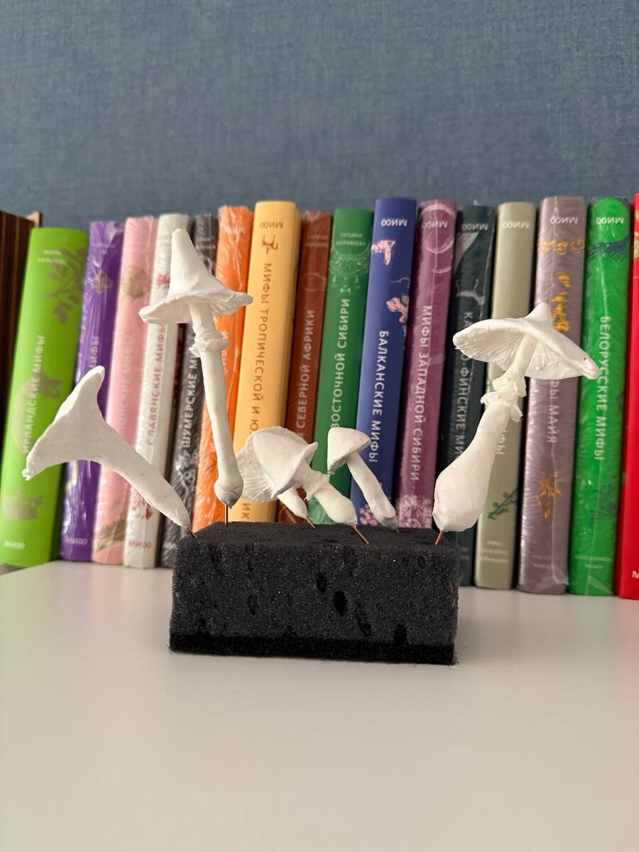 И я думаю, а чего лежит? Налепила грибов. Так как фарфор раскатывается в очень тонкую структуру, как их красить я не представляю, так как даже от легкого нажима кисти грибы деформируются. В общем, срок отвердевания - 24 часа на воздухе. Вот затвердеет и буду красить. Благо, материалов у меня всяких полно. Надеюсь, не испорчу…