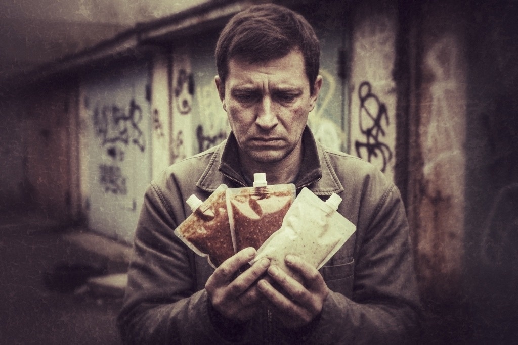 Теперь он разгружал грузовик. В кузове — коробки, ровные ряды. Водитель протянул накладную: «Соусы. Срок — через месяц». Он расписался, открыл первую, поставил на асфальт. Потом следующую.