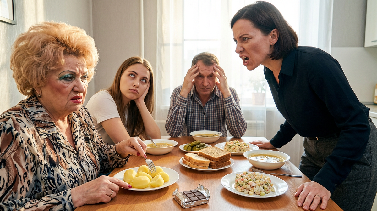 Вечером вся семья собралась за ужином. Я сидела молча, ковыряла вилкой салат. Лидия Семёновна наливала суп, улыбалась, будто ничего не произошло.