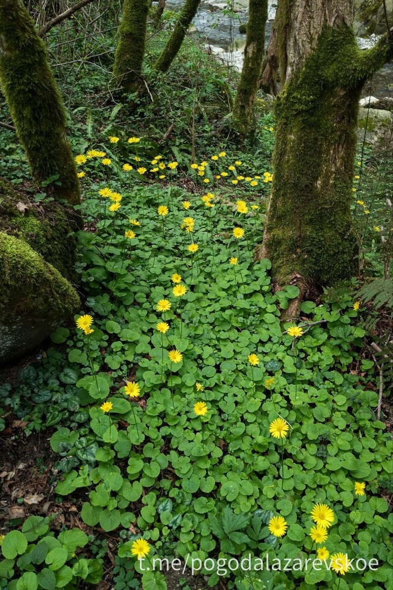 Скопление дороникума в лесу.