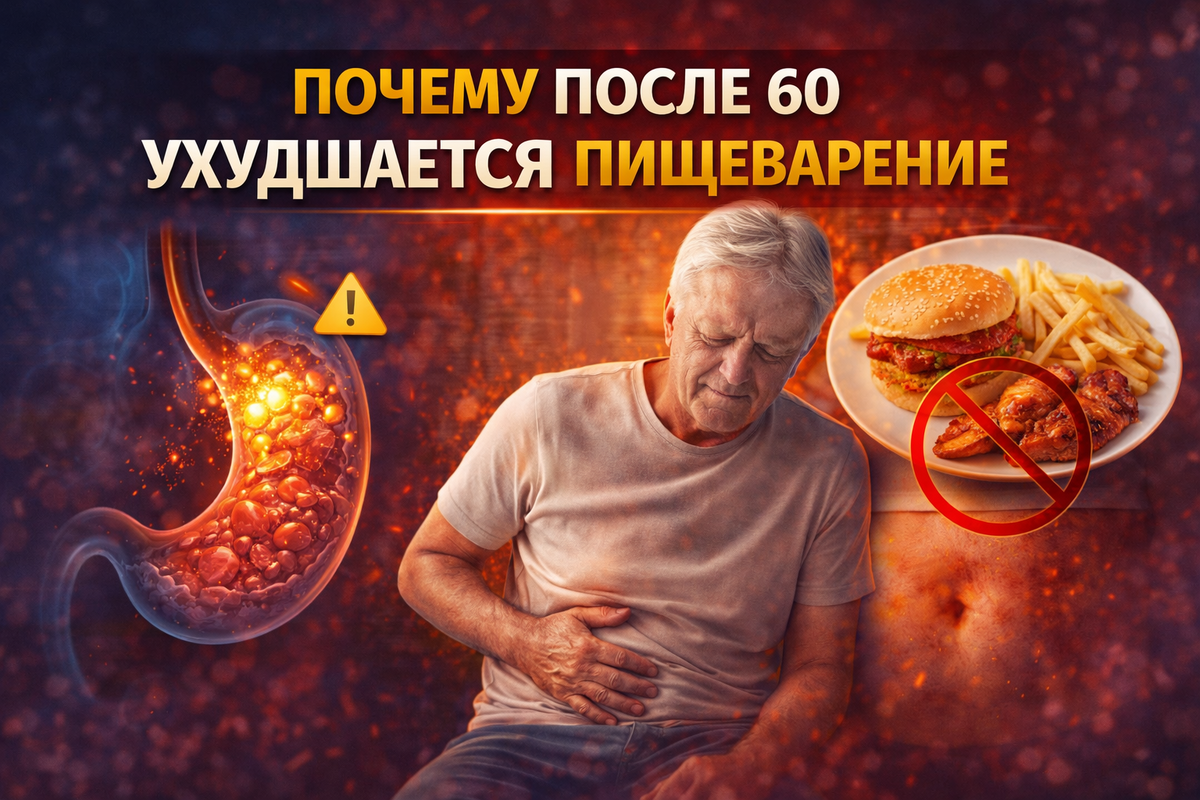 После 60 ситуация меняется. Появляется тяжесть, вздутие, медленное переваривание, иногда — запоры. И самое неприятное — это ощущение, что организм «уже не справляется». Но важно понять: это не болезнь, а естественные изменения, которые можно скорректировать. Разберёмся спокойно и по фактам. После 60 в организме происходят несколько процессов одновременно: 👉 Всё это влияет на переваривание пищи. Одна из главных причин. С возрастом желудок начинает вырабатывать меньше кислоты. Что это даёт: 👉 Особенно это заметно после мясной и жирной пищи. Кишечник — это мышцы.