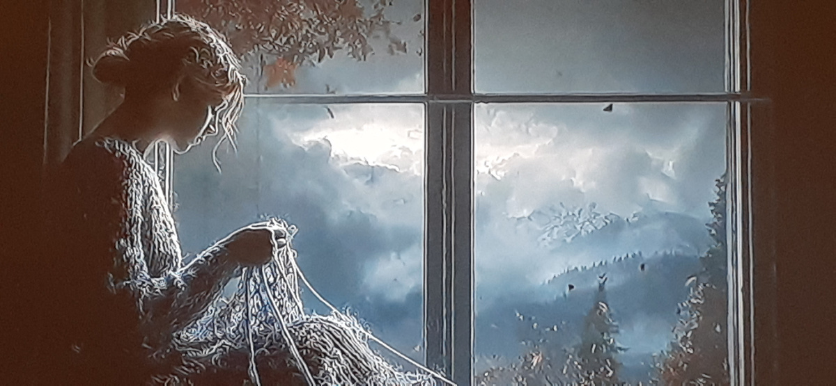 Дождь лил не переставая во двор старого дома, словно танец маленьких светлых фей. В вечернем полумраке тонкая фигура Люси двигалась медленно, будто погружённая в мысли о чём-то далёком и таинственном. Её тёмные волосы свободно струились по плечам, глаза были задумчиво прикрыты, губы слегка тронуты улыбкой, едва заметной, призрачной, такой же загадочной, как её внутренний мир.