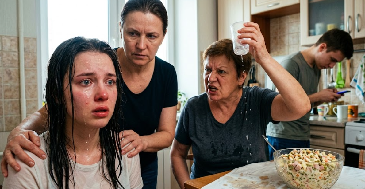 И тут произошло то, чего не ожидал никто. Анна Захаровна, тяжело задышав от раздражения и осознания собственной власти над невесткой, резко схватила свой наполовину полный стакан с минеральной водой. С размаху, почти не целясь, она плеснула воду прямо в лицо Наташе.