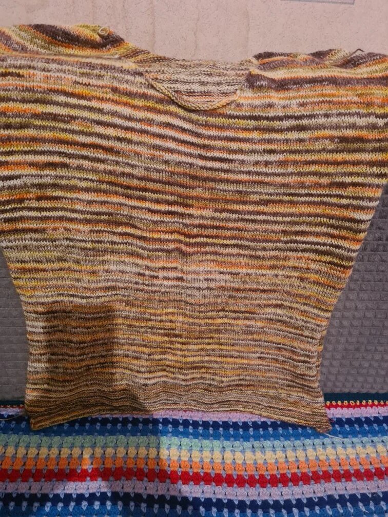 Здравствуйте! Вот и прошла последняя неделя нашего совместного проекта "Ликвидация 7". На эту неделю задание уже было известно: 4. У меня это Бабушкина кофта для внучки Юли. Вяжу я ее уже давно из пряжи Ализе Артисан цвета 9006. Мне оставалось связать рукава. Правда, один был уже начат, но он оказался узким, и я его распустила до манжеты. Так что вязать я начала с манжеты второго рукава , а затем продолжила вязать сразу два. Вот что у меня получилось. Продолжу вязание уже за рамками СП. Далее я довязала носочки из Форзы Фестиваль с подмотом белой рассказовской ангоры. Носочки получились, на мой взгляд , замечательные. После стирки стали намного мягче. Размер 38-39. А еще у меня случился спонтанный, незапланированный совершенно процесс. Я в своих закромах искала остатки пряжи для СП "Уютный носочек" и обнаружила, что у меня много пряжи Yarn Art Crazy Color, раньше я из них вязала носки, но в нОске они мне понравились: резинку не держат и быстро протираются. Я и подзабыл