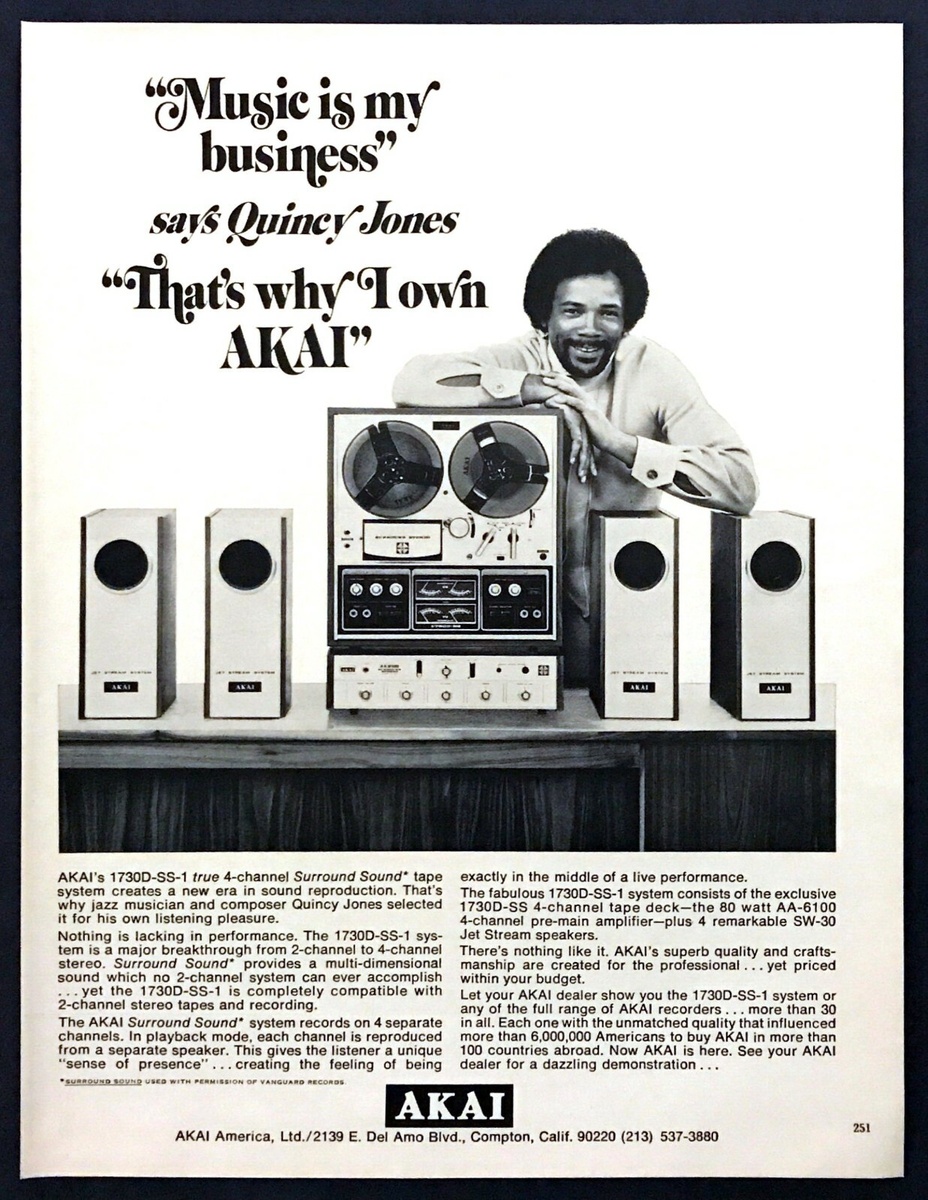 Но по порядку. Сам Квинси Джонс принимал участие в раскрутке четырёхканальных систем! Но и это не помогло, хотя рекламы напечатали массу, да и самих аппаратов наделали много. Но! Менее десяти лет и четыре канала исчезли из обихода, а двухканальное стерео вернулось на свой пьедестал. О борьбе стерео и квадра читайте здесь: Прошла пара десятилетий и вдруг, как чёртик из коробочки, на сцену выскочили многоканальные системы 5.1, затем 7.1 и другие категории Surround Sound. Как же так? Четыре канала оказались слишком дороги для меломанов, а вот восемь вполне по карману?