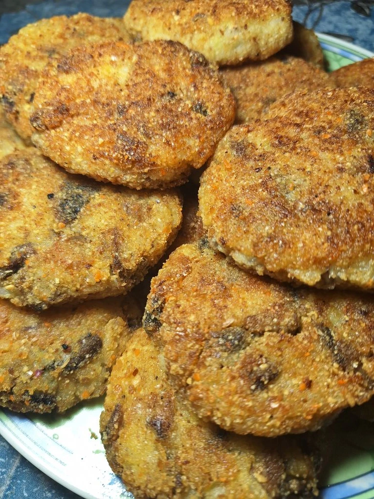 Приготовление:Картофель очистить, вымыть, выложить в подсоленную кипящую воду, добавить чеснок и отварить до готовности. Затем воду слить, картофель и чеснок растолочь в пюре. Грибы мелко нарезать и обжарить на раст.масле вместе с луком. Рис промыть, отварить до готовности в двух стаканах подсоленной воды. Соединить картофель, рис, грибы с луком, добавить муку, посолить и поперчить по вкусу, все тщательно перемешать. Из полученной массы сформировать котлеты, обвалять в панировочных сухарях и обжарить на раст.масле с двух сторон. Приятного аппетита!