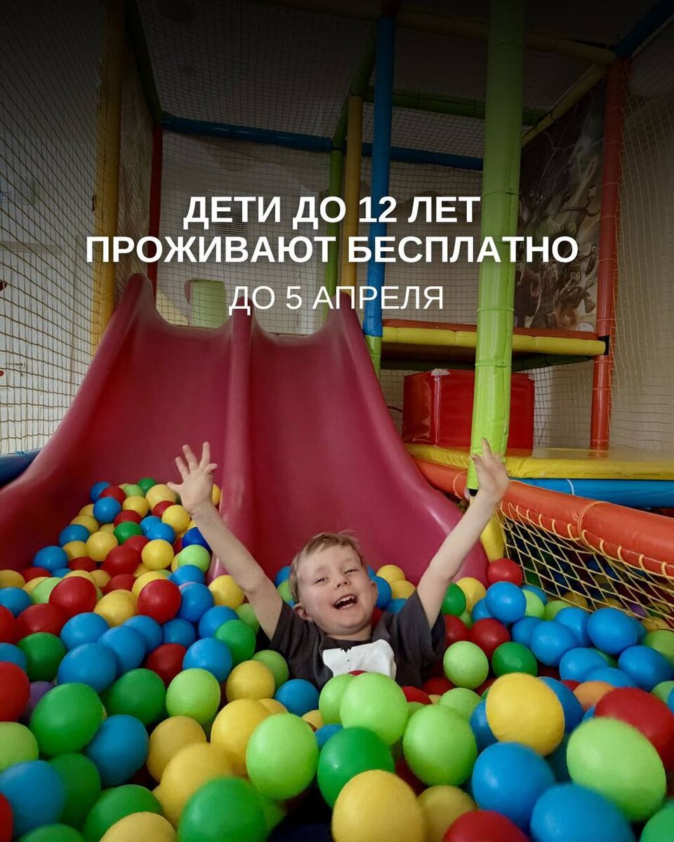 До 5 апреля у нас действует особое предложение: дети до 12 лет проживают бесплатно 💛 Это отличный шанс устроить небольшой отпуск среди природы, где комфортно и интересно будет каждому. Пока дети проводят время в игровой комнате с аниматором, участвуют в активностях и находят новых друзей, у вас есть возможность по-настоящему отдохнуть и замедлиться. 🏊 тёплый бассейн 39° под открытым небом 🧖 финская сауна 🌿 прогулки и свежий воздух 🔥 беседки и мангальная зона 🍽 уютные вечера в ресторане Весенние каникулы — это не просто отдых, а время, которое вы проведёте вместе и запомните надолго. 📲 Забронируйте свой заезд на сайте или по телефону: +7 (900) 000-99-99