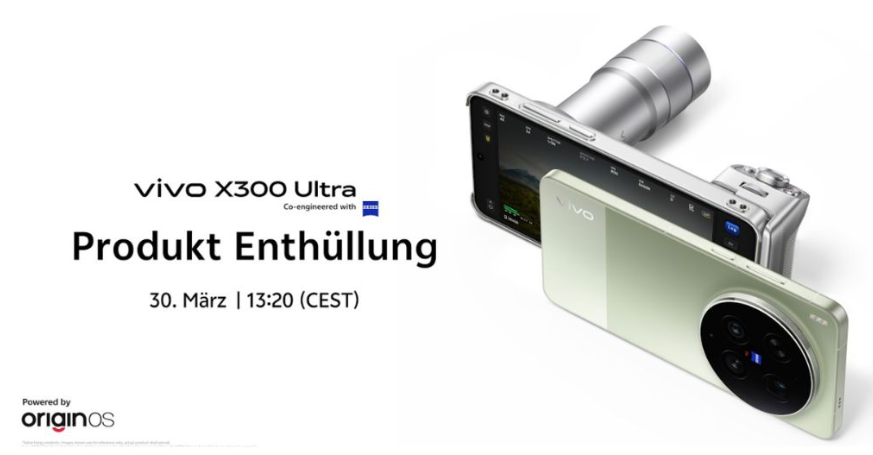 Смартфон Vivo X300 Ultra уже представлен в Китае и поступит в продажу 30 марта 2026 года. Теперь на официальном сайте Vivo Shop в Германии, Австрии и Венгрии появилась информация о том, что в тот же день устройство поступит в продажу на европейском рынке. Также стали известны цены и некоторые другие ключевые характеристики смартфона Vivo X300 Ultra для европейского рынка. Согласно тизеру на официальном сайте Vivo Shop в Германии, Австрии и Венгрии, смартфон Vivo X300 Ultra поступит в продажу 30 марта в 13:20 по центральноевропейскому летнему времени. На том же тизере указано, что для европейского рынка устройство будет доступно в двух цветовых вариантах: зелёном и чёрном. Однако для Китая уже анонсирован белый цвет, которого, судя по всему, нет на тизере для ЕС. Кроме того, на тизерном баннере указано, что в упомянутых выше регионах ЕС вместе со смартфоном будет доступен комплект с телеобъективом 400 мм. Кроме того, два пользователя X поделились информацией о цене устройства для европе