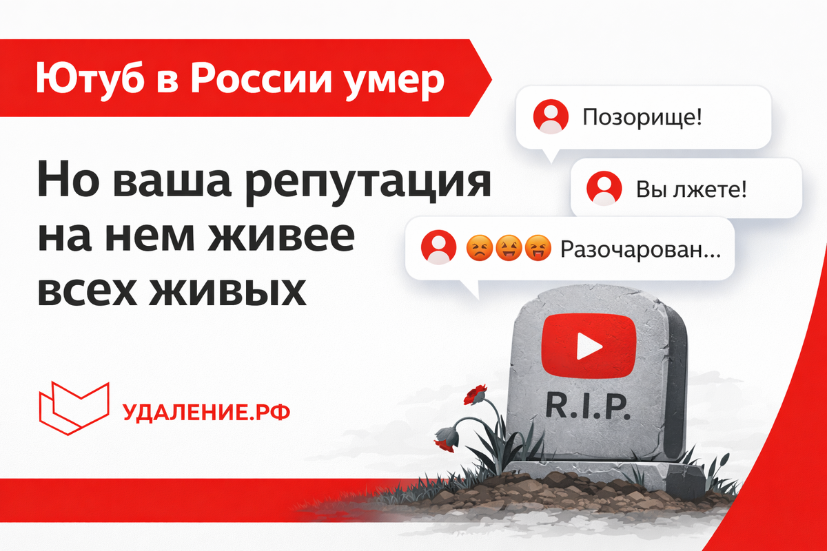 Но ваша репутация на нем живее всех живых Последние месяцы я постоянно слышу: Да кому сдался этот Ютуб? Он заблокирован, его никто не смотрит, расслабься Обычно это говорят предприниматели, когда находят в выдаче старое разоблачение, «слив» от конкурентов или грязный ролик из прошлого. Логика железная: «Раз у меня не открывается без VPN, значит, и проблемы нет». Но правда в том, что для вашего бизнеса блокировка Ютуба в РФ - это худшее, что могло случиться. Что именно сломалось