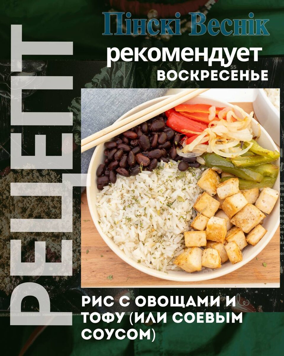 😉😉😚😙😚 Воскресенье: Рис с овощами и тофу (или соевым соусом) Ужин в азиатском стиле, яркий и быстрый. Ингредиенты: 1 стакан длиннозерного риса (или пропаренного), 1 упаковка тофу (200–300 г), 1 морковь, 1 болгарский перец, 100 г стручковой фасоли (замороженной), соевый соус, 1 зубчик чеснока, имбирь (по желанию), кунжутное масло (или обычное). Приготовление: 1. Отварите рис. 2. Тофу нарежьте кубиками, обжарьте на масле до легкой корочки, выложите на тарелку. 3. В той же сковороде обжарьте нарезанные соломкой морковь, перец и фасоль (около 5–7 минут). Добавьте чеснок. 4. Верните тофу в сковороду, влейте 2–3 ст. л. соевого соуса, перемешайте, прогрейте минуту. 5. Подавайте с рисом. @Пинский Вестник 📱Ютуб 📱ВК 📱ИНСТАГРАМ 📱ОК 📱ФЕЙСБУК 📱ТИК ТОК Сайт Прислать новость