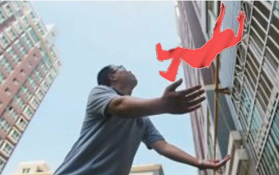 Мужчина шел по улице и увидел, как из окна шагает человек. Прохожий кинулся его "поймать".