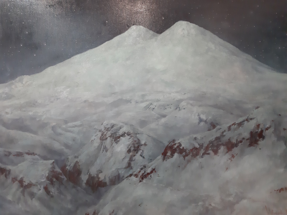 Юная художница из Кисловодска Малика Кубанова не боится больших полотен. Она привезла на выставку в Черкесск сразу две выставки. На них в одном зале Художественной галереи встречает зрителей своей величавой красотой Эльбрус и другие вершины Кавказа. В другом зале посетитель, уже погрузившийся в горные пейзажи, вдруг оказывается среди птиц, зверей и даже рептилий. Самое большое впечатление на меня произвел ледяной Эльбрус. Я, как и все жители Карачаево-Черкесии, видел Эльбрус, как говорится, во всех видах. В натуре. В бинокль. Своими глазами с различных расстояний. Со всех сторон. Его можно увидеть из Черкесска, из Пятигорска, с вершины горы Мусса-Ачитара Домбая, на подъезде к Черкесску со стороны Ставрополя, на выезде из Черкесска по Пятигорской трассе, с дороги, ведущей в станицу Кардоникскую... В конце концов, с подножья и основания самого Эльбруса. Чуть не забыл - с вертолета! Всего не перечислишь! Особенно красив Эльбрус с перевала Гум-Баши. А если еще подняться от перевала на в