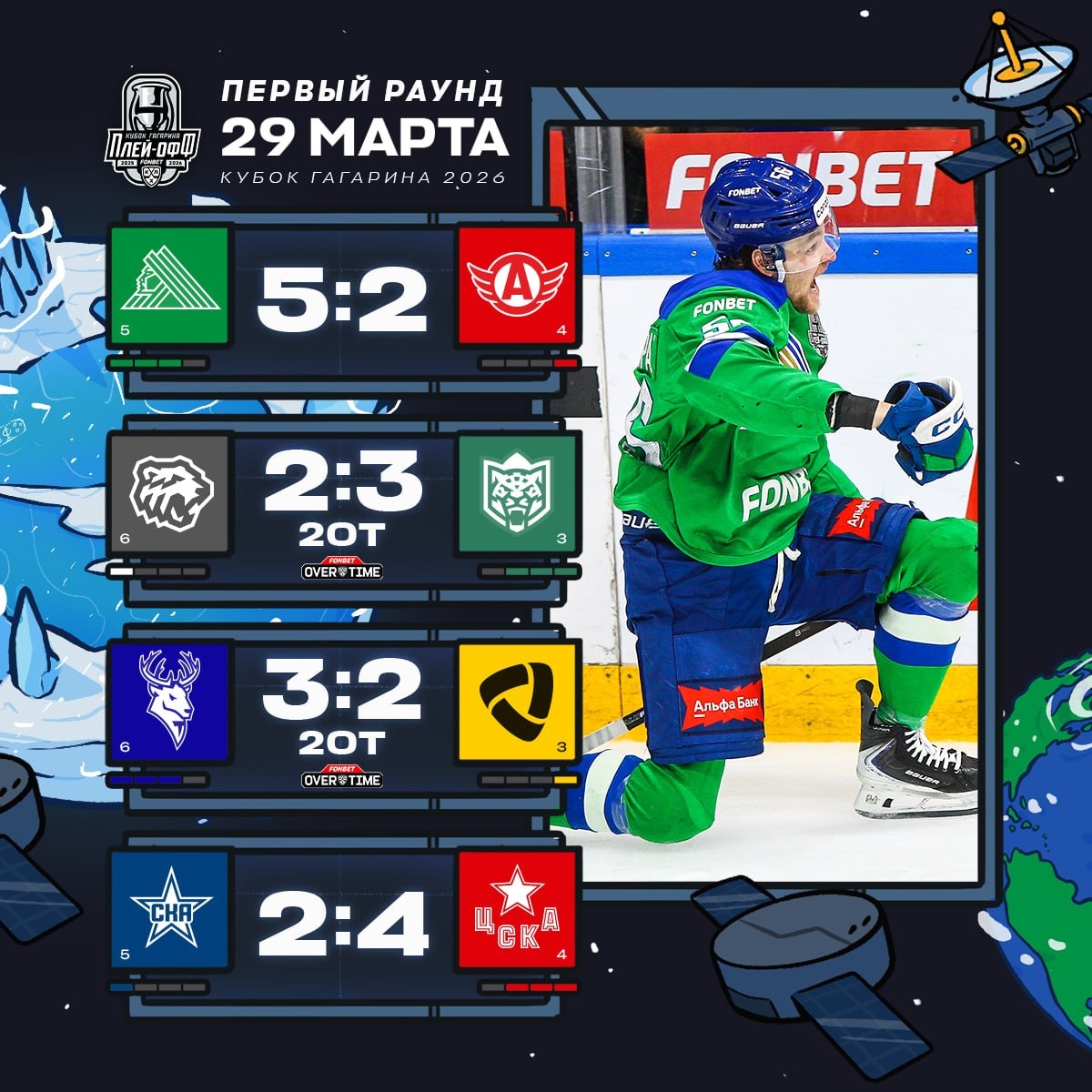 В Челябинске и Нижнем доигрались до вторых овертаймов, «Салават Юлаев» и ЦСКА забрали третьи победы.