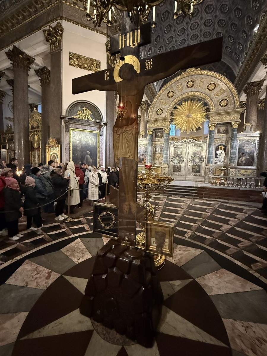 кафедральном соборе. Богослужебные песнопения исполнили хор собора под управлением Светланы Румянцевой и молодежный хор собора под управлением Маргариты Галечик. При пении стихиры «Тебе, одеющагося светом, яко ризою» Святое Евангелие было изнесено на центр храма и положено на аналое перед Крестом. Духовенство пропело акафист Страстям Христовым. После возглашения прокимна «Разделиша ризы» был прочитан отрывок из Евангелия от Марка, повествующий о Страстях Христовых. При пении стихиры «Приидите, ублажим Иосифа приснопамятного» духовенство и все молящиеся совершили поклонение Кресту Господню.