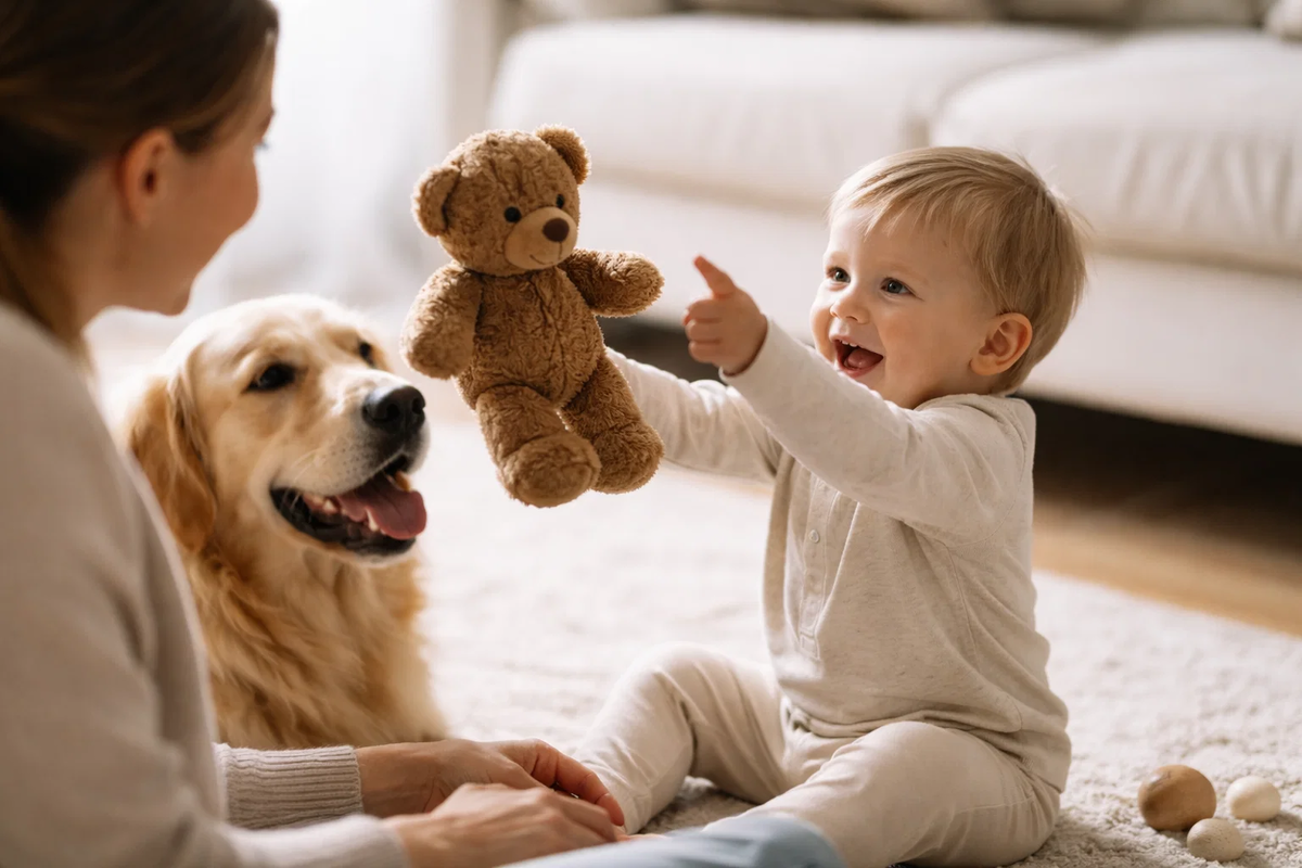 Второе — это отклик, а не контроль. Не обязательно учить ребёнка чему-то в каждый момент. Гораздо ценнее отразить то, что он уже делает. Он издал звук — вы повторили. Он улыбнулся — вы усилили эмоцию. Это создаёт ощущение диалога, а не одностороннего воздействия.