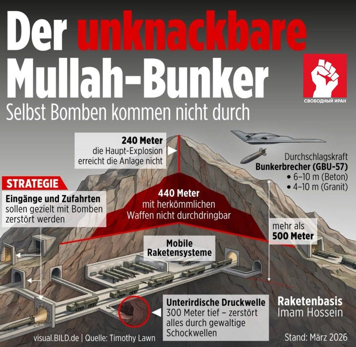 🚀💥 BILD со ссылкой на американских чиновников пишет, что подтверждено уничтожение лишь около трети арсенала, а часть ракет и инфраструктуры может оставаться в строю. Подземные базы в граните — все еще головная боль для ударов по такой глубине. Подземный тоннельный люкс, который не берут с первой попытки. Подпишитесь на канал