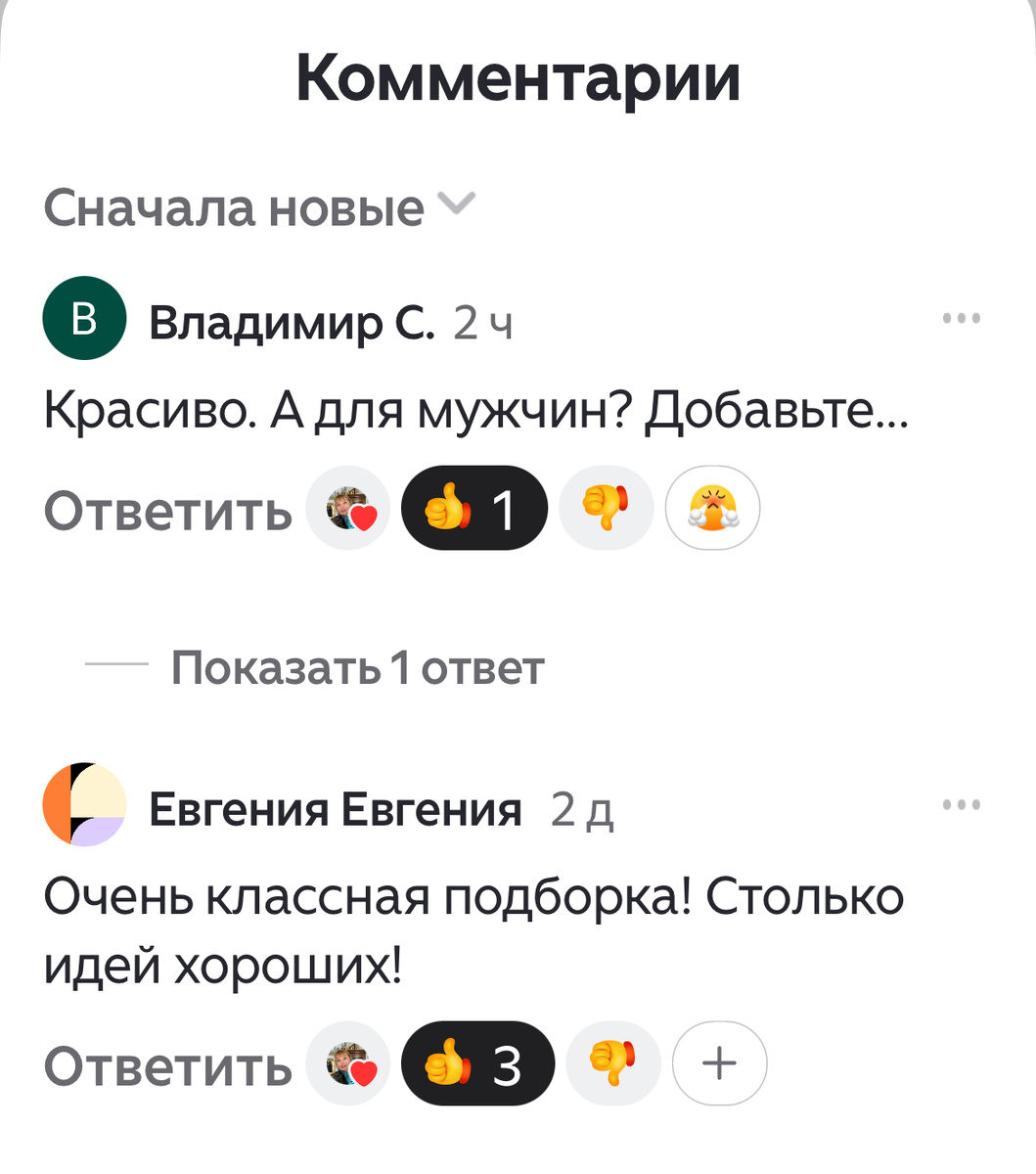 Я всегда отвечаю подписчикам, мне приятно, что люди делятся, советуют! Так глядишь и новая идея появилась ! Это я к чему? Мне тут комментарий написали , мужчина!
