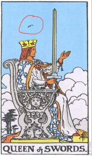 В масти мечей, в том числе и в аркане Королева Мечей, птицы - символ информации и невидимого потока мыслей.