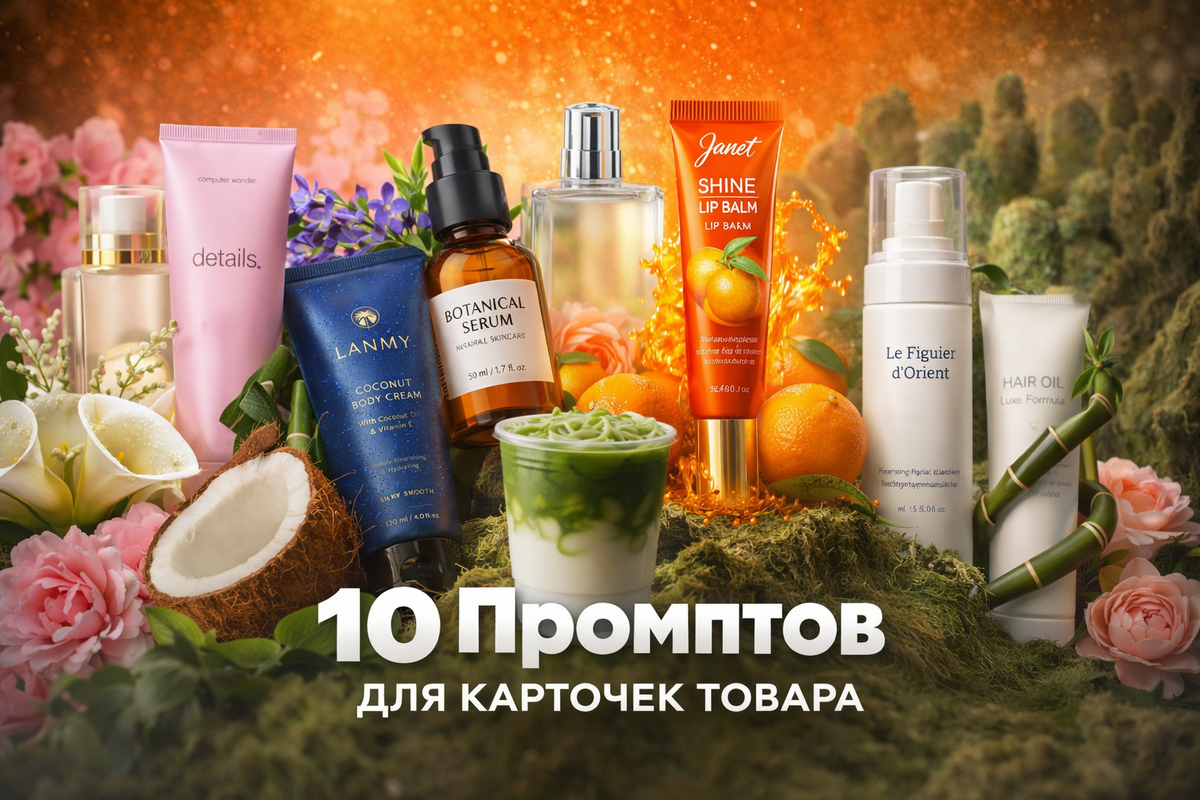 Собрал первую коллекцию из 10 промптов для карточек товара, которые помогут быстрее создавать стильные, аккуратные и продающие изображения. Эта подборка подойдет для тестов, оформления витрины, маркетплейсов, соцсетей и просто для поиска удачного визуального стиля. В статье показываю готовые идеи, которые можно брать за основу и адаптировать под свои товары.